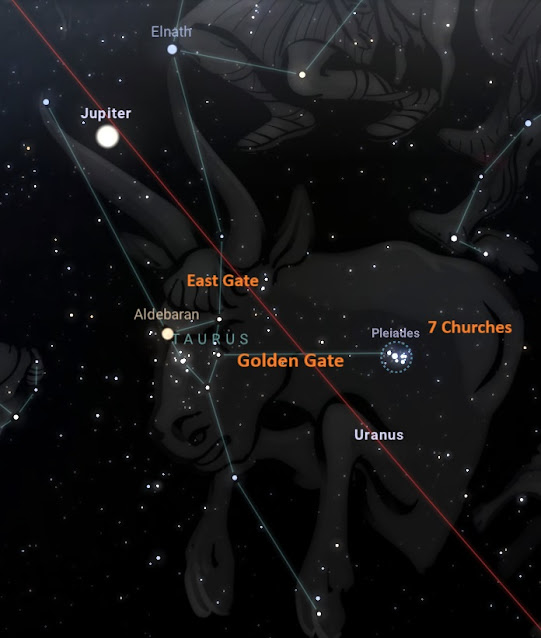 Another interesting thing to note is that Jupiter "knocks" on the East Gate in Taurus in January, stands still in the gate as if waiting, and then goes into retrograde in February and reverses back out of the gate and continues out of the constellation of Taurus.